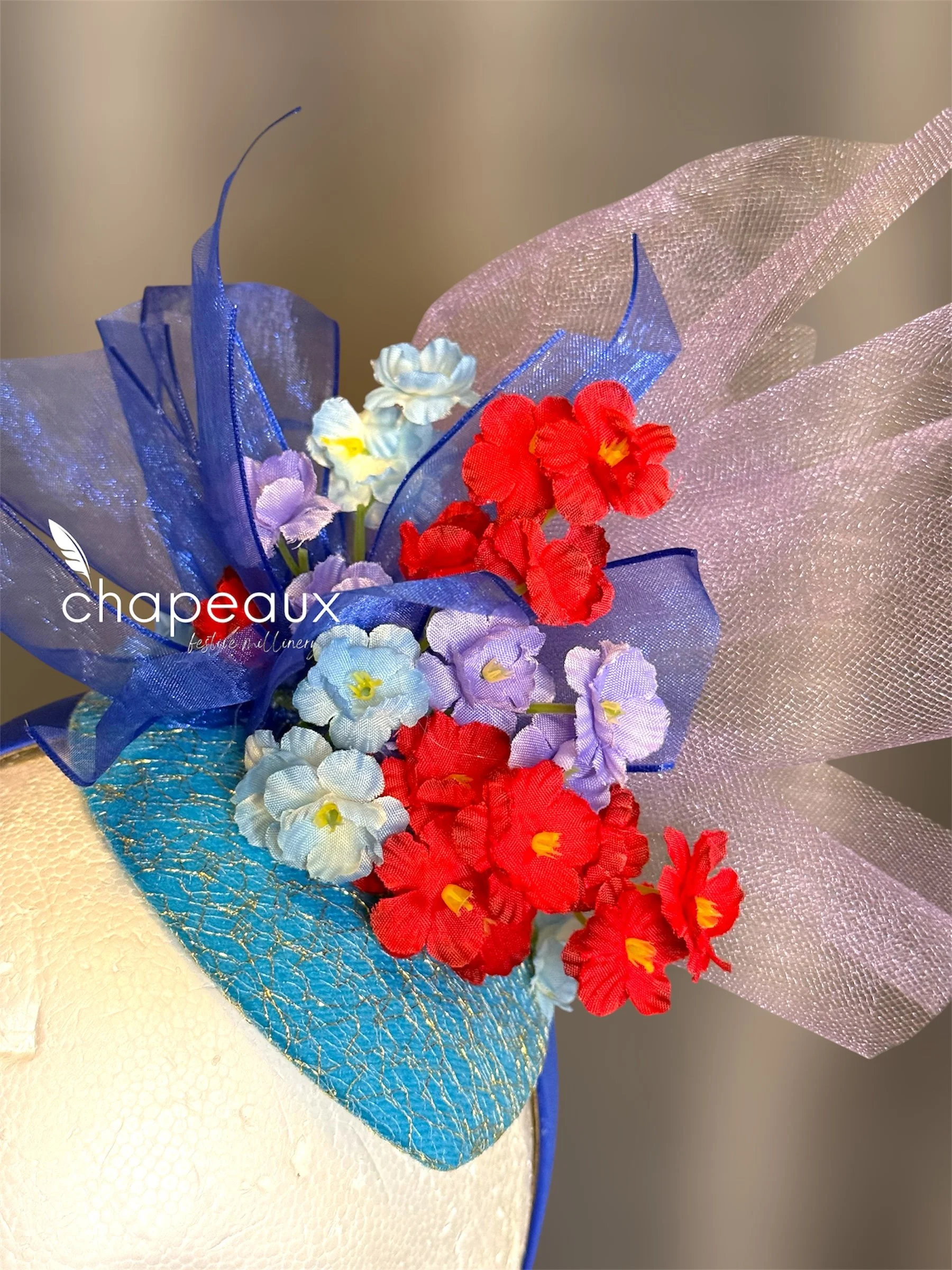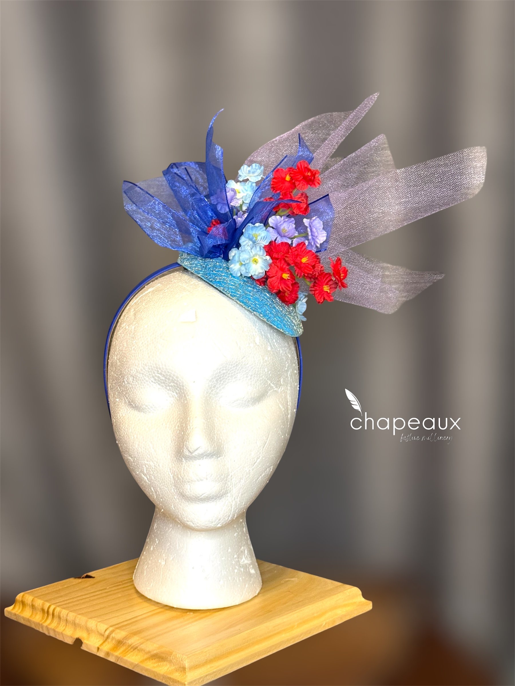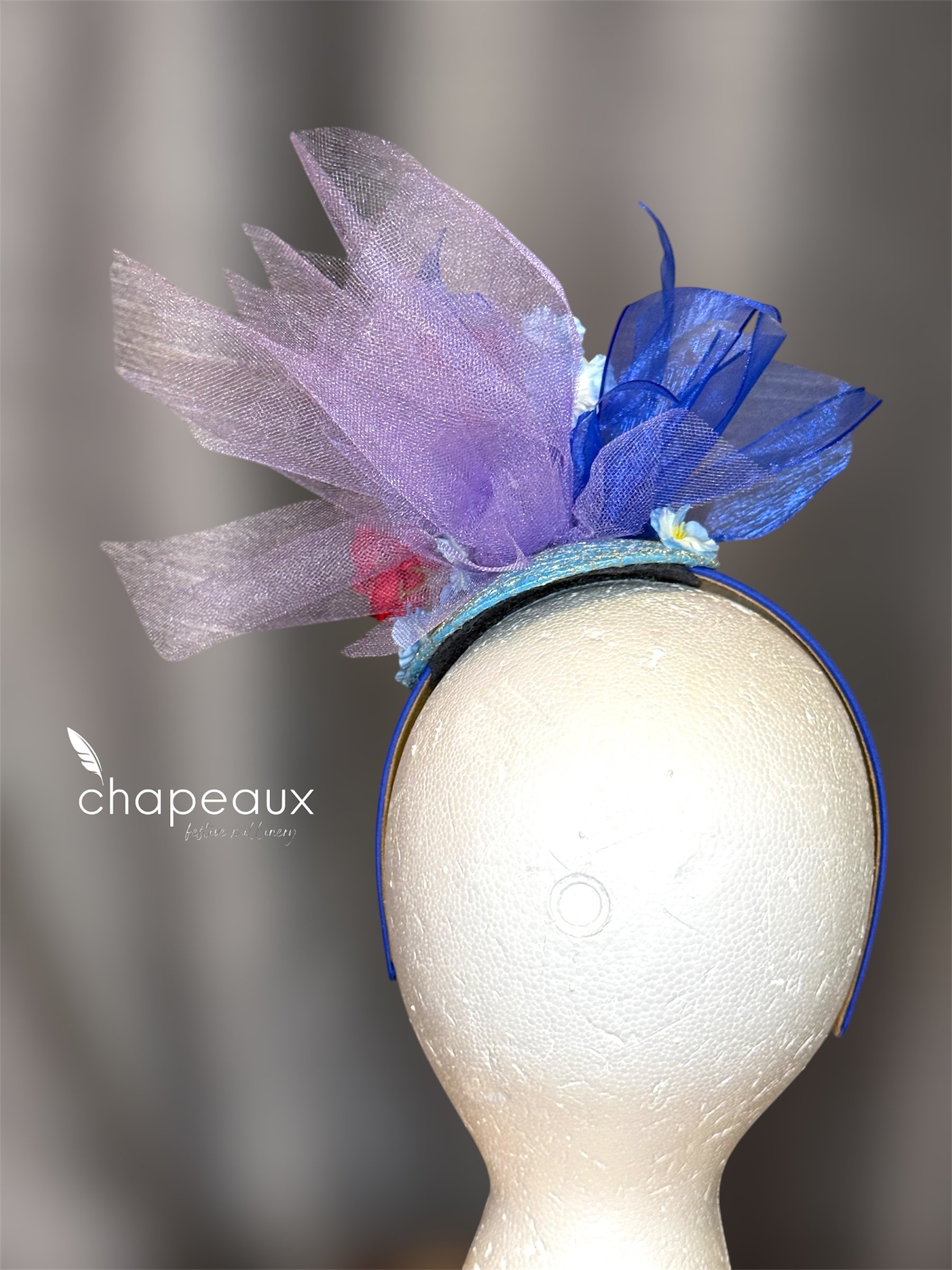 Inspired by the favorite colors of our new friend from St Jude, this piece comes straight from the heart. Attaches with a blue satin headband.