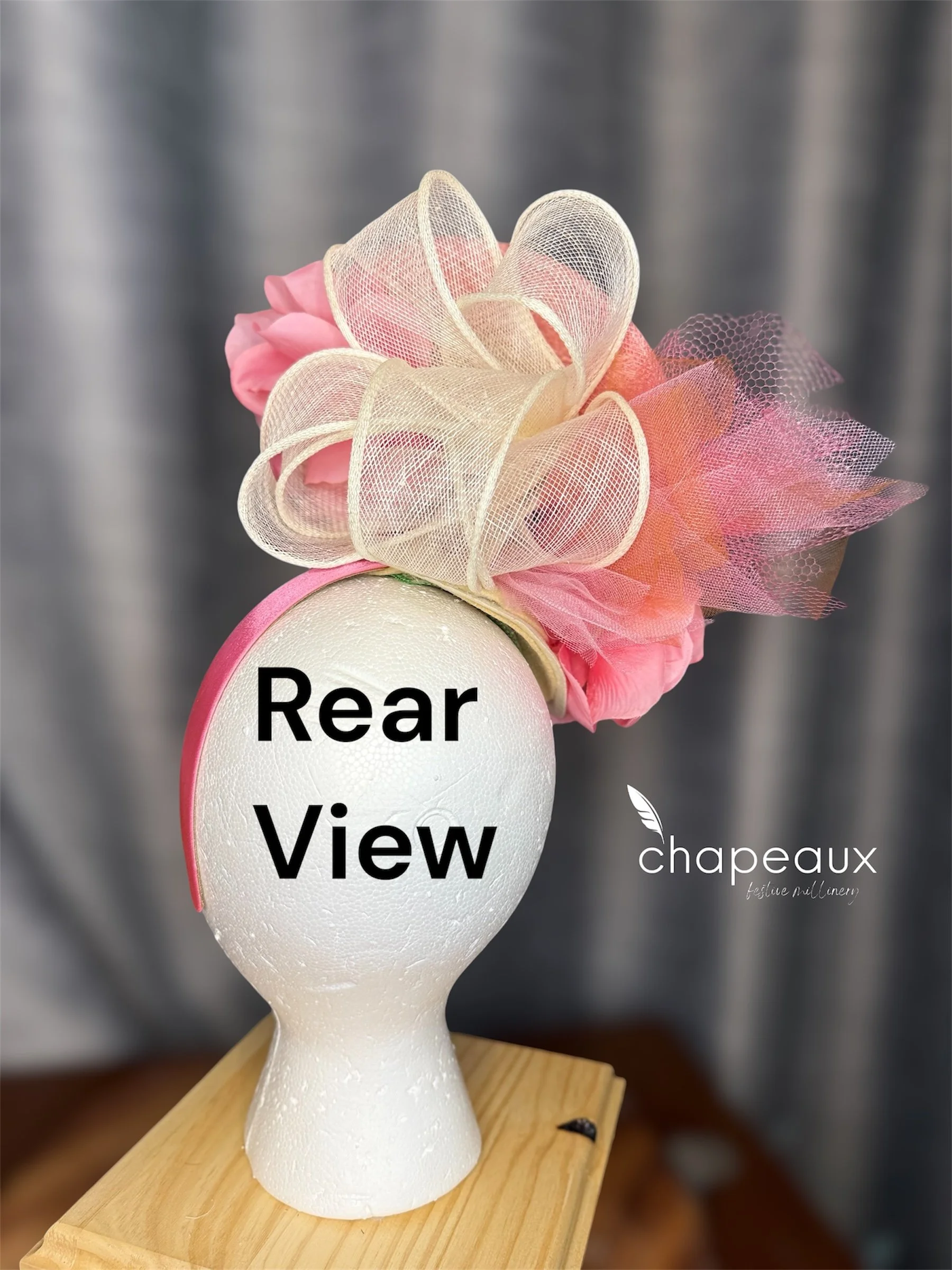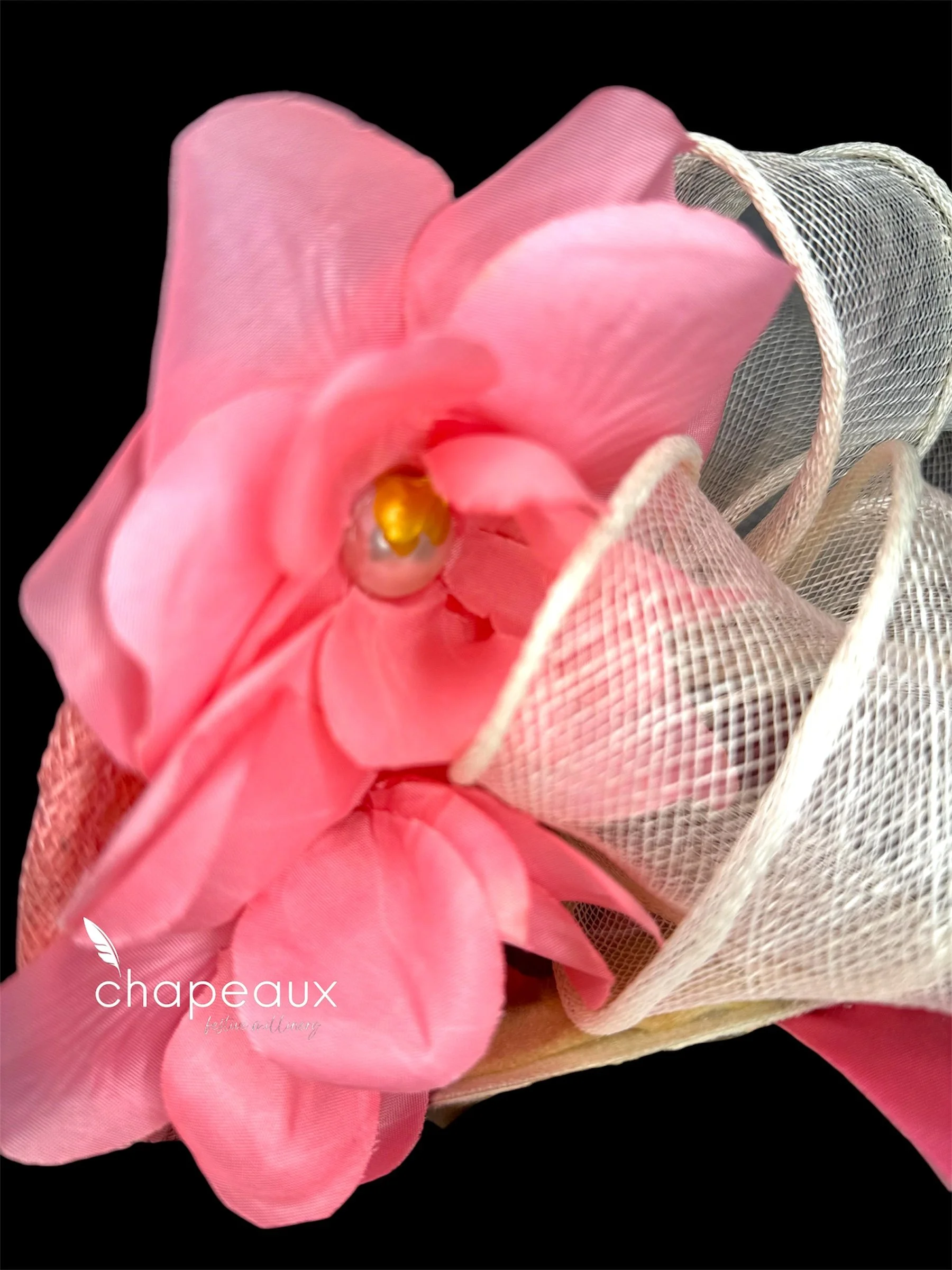Truly one of a kind, this Chapeaux attaches with a satin headband to match the sinamay base.